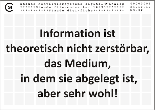 Konvertieren von digitalen Images auf den Langzeitspeicher Mikrofilm Farbscanner zum Digitalisieren von Dokumenten, Büchern, Zeichnungen, Zeitungen und allen anderen Vorlagen bis zur Größe A0. Digitalisieren, Verfilmen und Konvertieren mit einem System. Mikrofilm Entwicklungsgeräte, Diazo Duplizierer und Verbrauchsmaterial Digitalisieren, Verfilmen oder Konvertieren. Was dürfen wir für Sie tun?